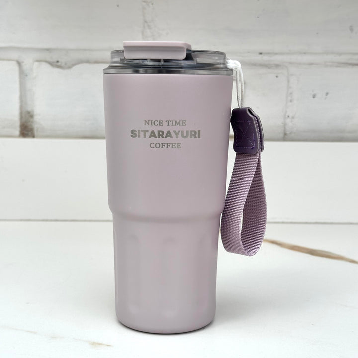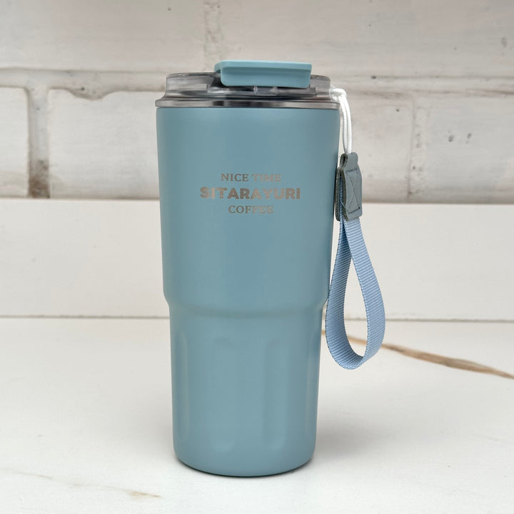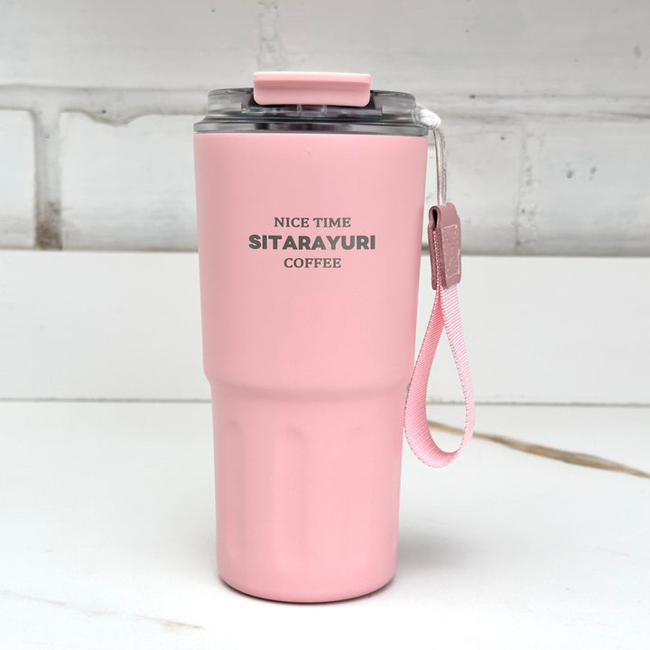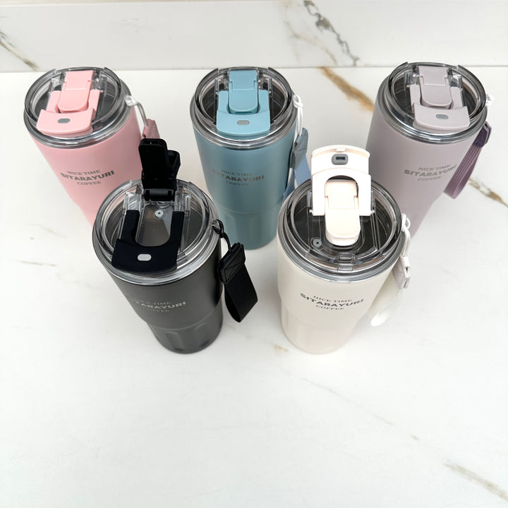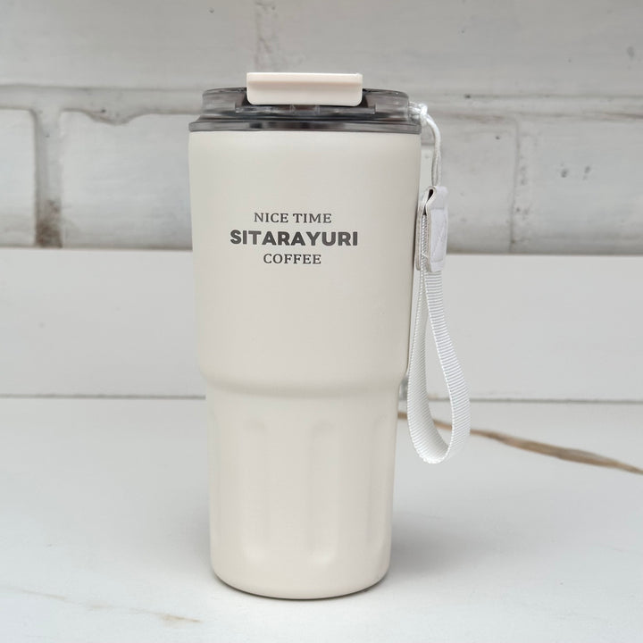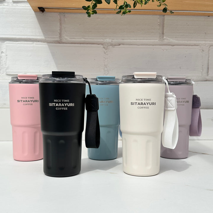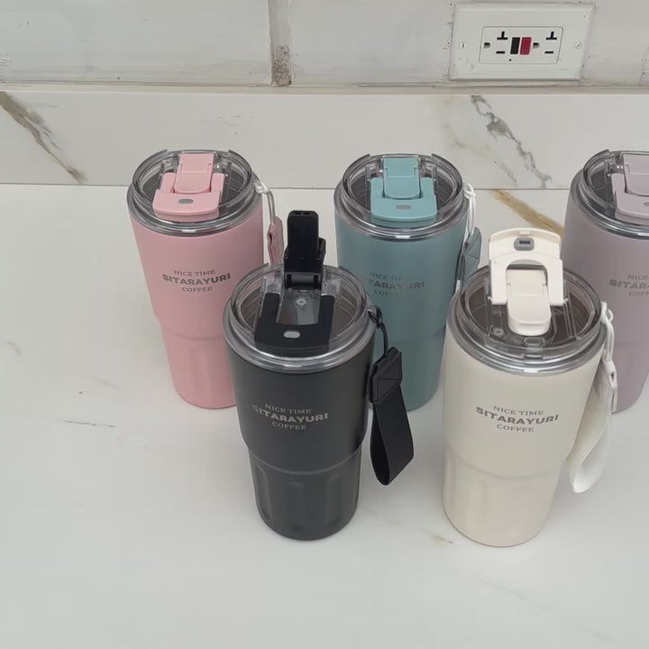 Disfruta de tus bebidas favoritas con este práctico termo de 600 ml diseñado para acompañarte en todo momento. Su estructura de acero inoxidable mantiene la temperatura de tu café, té o infusiones por más tiempo, ya sea caliente o fría.