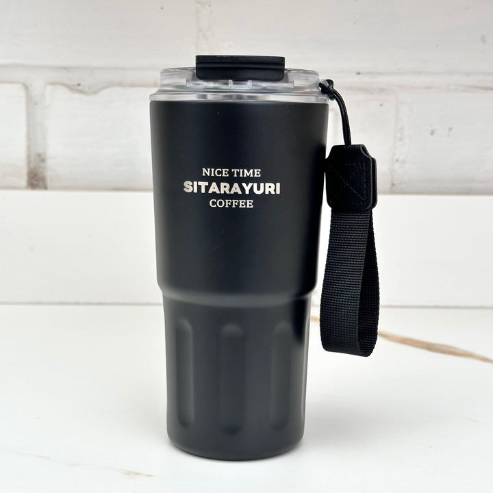 Cuenta con tapa hermética con cierre a presión, evitando derrames, y una agarradera lateral ergonómica que facilita su uso y transporte. Su diseño moderno en color negro mate con acabado elegante lo convierte en la opción ideal para oficina, viajes o el día a día.
